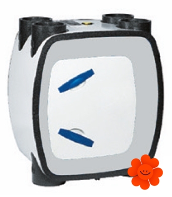 Jednotka obsahuje protiprúdový výmenník s vysokou účinnosťou spätného získavania tepla, až 90-97%, a trojotáčkové ventilátory s nízkou spotrebou.