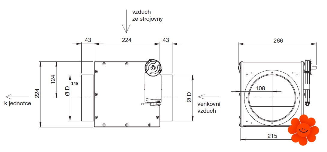 Klapka MSK-AFP je ochrana proti zamrznutiu rekuperačných jednotek EHR 140, 225, 280, 300, 325 a 480, DOMEO 210, IDEO 325 a 450.