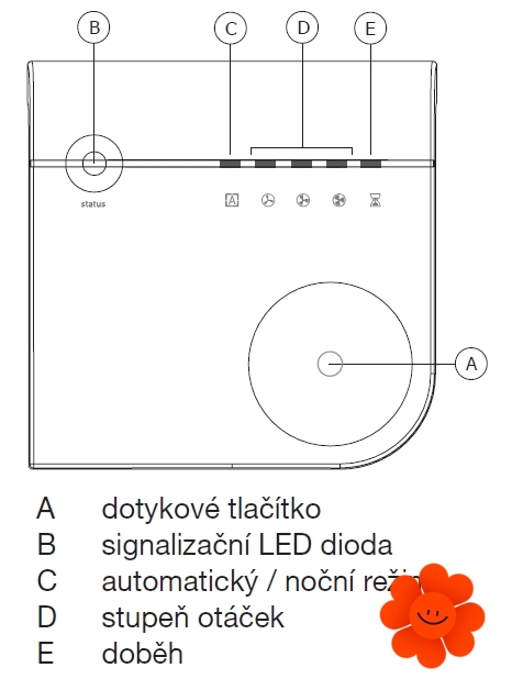 Bezdrôtový ovládač s integrovaným čidlom CO2 (meria koncentráciu oxidu uhličitého), ktorý podľa kvality vzduchu reguluje výkon vetracích jednotiek EHR 300 Akor a EHR 140 Akor BP. Ľahko montovateľný na omietku steny. Reguluje otáčky jednotky tromi výkonnostnými stupňami.