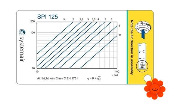 Systemair Tune-R-250-3-M4 je regulačná a uzatváracia klapka pre kruhové potrubia. Tune-R klapka je skonštruovaná z pozinkovaného oceľového plechu a neobsahuje silikón. Klapka je ovládaná servopohonom s pružinou 230V. Táto klapka disponuje gumovými tesneniami na plášti liste. Všetky tieto tesniace vložky sú vyhotovené z čierneho kaučuku. Všetky materiály použité na jej výrobu spomaľujú šírenie požiaru.