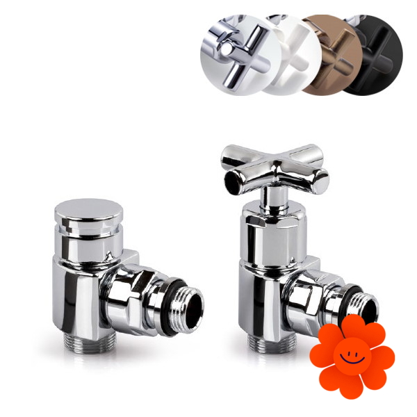 Rohová manuálna dizajnová sada s možnosťou prerobenia na termostatickú - pár 0385+0363 (prívodný ventil, odvodný ventil a 2x šróbenie).