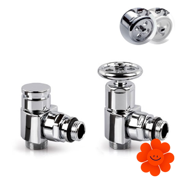 Rohová manuálna dizajnová sada s možnosťou prerobenia na termostatickú - pár 0345+0363 (prívodný ventil, odvodný ventil a 2x šróbenie).