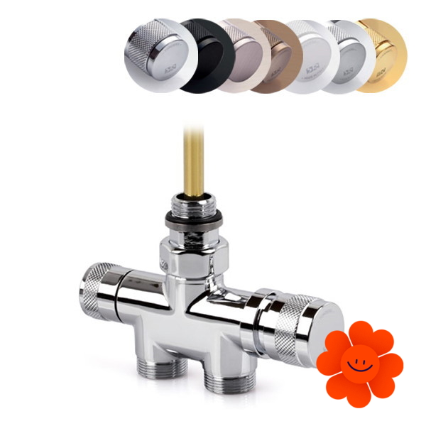 Priamy stredový manuálny dizajnový ventil s možnosťou prerobenia na termostatický - sada obsahuje rohový ventil s ponornou trubicou (0690) a 2x šróbenie.