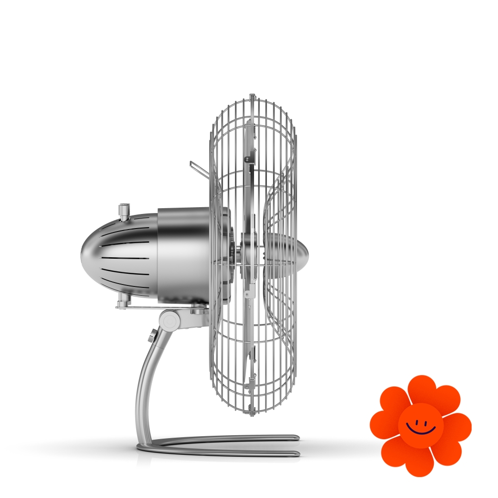 Ventilátor Stadler Form Charly little je malý nenápadný stroj, ktorý je vyrobený celý z kovu: zinok, hliník a nerezová oceľ. Je v striebornom prevedení.