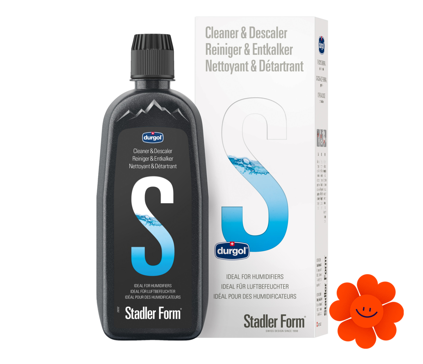 Stadler Form čistič a odvápňovač, vyvinutý a vyrobený pod značkou Durgol, ideálny pre jednoduché čistenie zvlhčovačov, ktorý môžeme použiť na odstraňovanie vodného kameňa aj niektorých iných domácich spotrebičov.