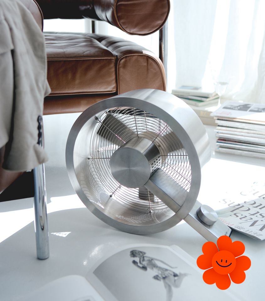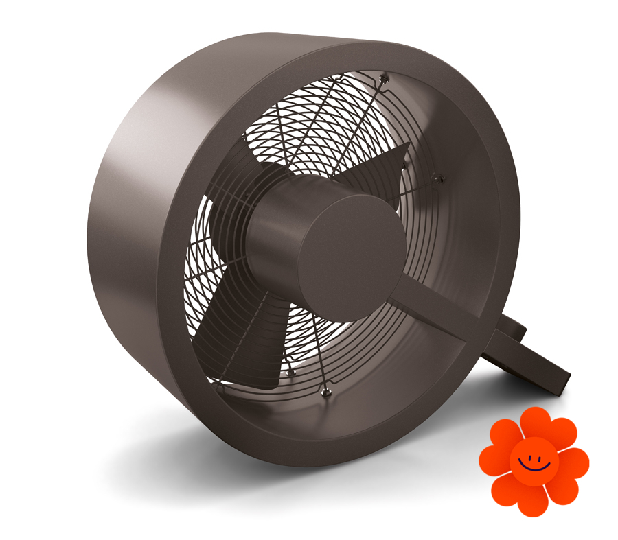 Ventilátor Q s príkonom 35 W je k dispozícii v oceľovej, bronzovej a čiernej farbe. Jeho výhodou je tiež nezvyčajne tichá prevádzka.
