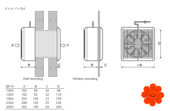 Axiálny ventilátor BF-W 230A je vhodný pre montáž do okna, resp. cez stenu.