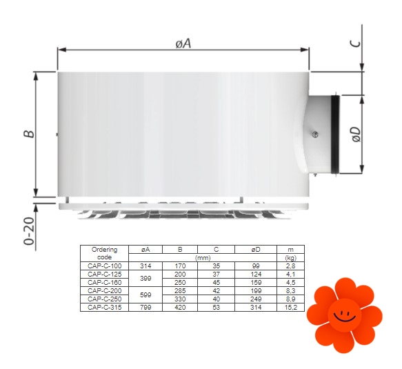 CAP-C distribuuje chladný alebo ohrievaný vzduch bez toho, aby spôsoboval prievan (VAV). Maximálny teplotný rozdiel ochladzovaného vzduchu pri prívode ΔT=12K.