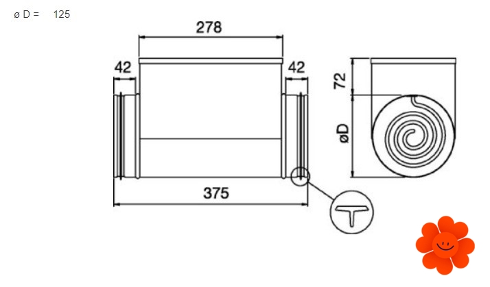 Plášť elektrického ohrievača Systemair CBM 125-1,2 je zhotovený z Aluminium Zinku, ohrevné špirály sú vyrobené z nerezovej ocele. Pripojovacie hrdlo ohrievača má gumové tesnenie.