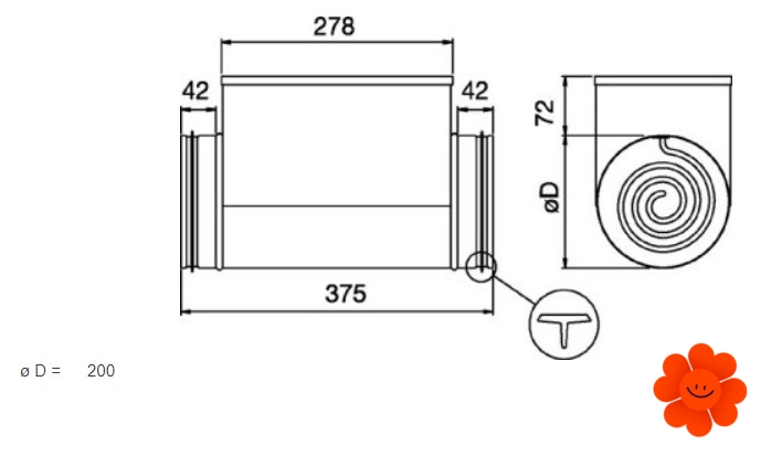 Plášť elektrického ohrievača Systemair CBM 200-5,0 je zhotovený z Aluminium Zinku, ohrevné špirály sú vyrobené z nerezovej ocele. Pripojovacie hrdlo ohrievača má gumové tesnenie.