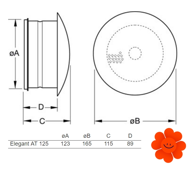 TSK-125 je kruhový, stropný difúzor s nastaviteľnou štrbinou a perforovaným čelným panelom. Je možné ho použiť aj na odvod vzduchu.