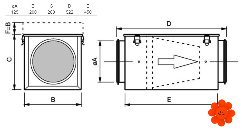 Vo vnútri skrine elektrického ohrievača, ktorá je vyrobená z veľmi kvalitného materiálu AluZink, sa nachádzajú ohrevné špirály vyrobené z nerezovej ocele. Táto skriňa ohrievača je kalibrovaná na montáž smerom nahor. Montáž v opačnom smere je prísne zakázaná kvôli vysokej pravdepodobnosti nastania nebezpečnej situácie s vysokým bezpečnostným rizikom.