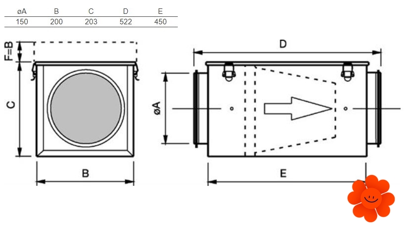 Vo vnútri skrine elektrického ohrievača, ktorá je vyrobená z veľmi kvalitného materiálu AluZink, sa nachádzajú ohrevné špirály vyrobené z nerezovej ocele. Táto skriňa ohrievača je kalibrovaná na montáž smerom nahor. Montáž v opačnom smere je prísne zakázaná kvôli vysokej pravdepodobnosti nastania nebezpečnej situácie s vysokým bezpečnostným rizikom.
