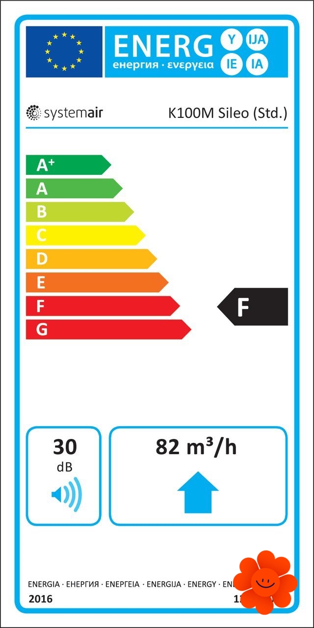 Kruhový ventilátor Systemair K 100 M sileo spĺňa minimálnu požiadavku na energetickú účinnosť podľa smernice ERP.