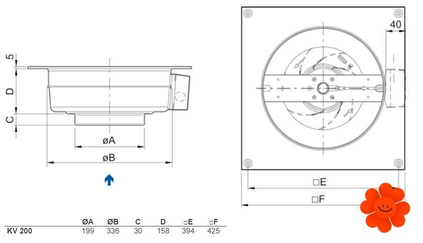 Systemair KV 200 L sileo kruhový ventilátor je určený pre montáž na stenu alebo strop s možnosťou pripojenia kruhového potrubia na odvádzanie vzduchu. Motor má vonkajší rotor a obežné kolesá s lopatkami zahnutými dozadu. Motor ventilátora má pre svoju ochranu vstavané tepelné kontakty s manuálnym resetom.