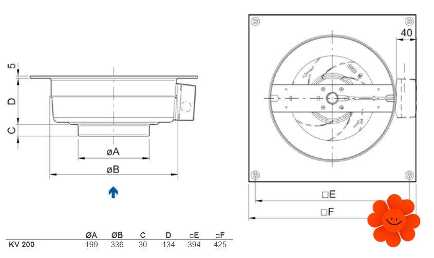 Systemair KV 200 M sileo kruhový ventilátor je určený pre montáž na stenu alebo strop s možnosťou pripojenia kruhového potrubia na odvádzanie vzduchu. Motor má vonkajší rotor a obežné kolesá s lopatkami zahnutými dozadu. Motor ventilátora má pre svoju ochranu vstavané tepelné kontakty s manuálnym resetom.