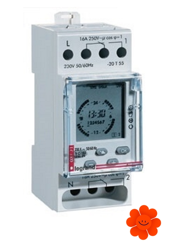 Na LCD displeji sa zobrazuje aktuálny čas, dátum, deň v týždni a stav kontaktov. Prepínanie letného a zimného času je možné manuálne aj automaticky.