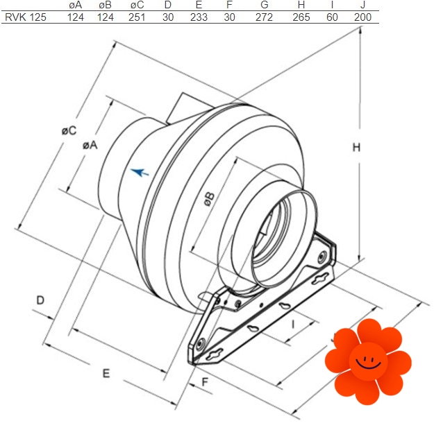 Systemair RVK 125E2 sileo kruhový ventilátor je určený pre montáž do kruhového potrubia. Motor má vonkajší rotor a obežné kolesá s lopatkami zahnutými dozadu. Motor ventilátora má pre svoju ochranu vstavaný tepelný kontakt s automatickým resetom.