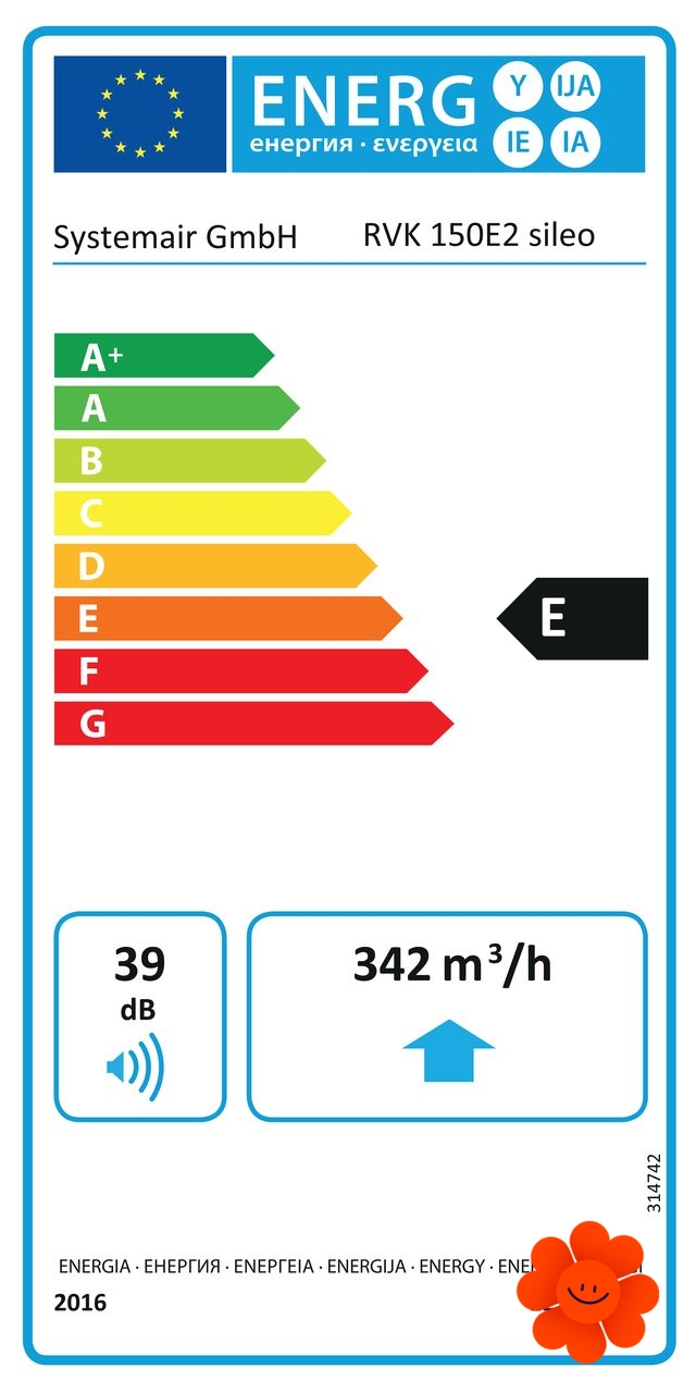 Kruhový ventilátor Systemair RVK 150E2 sileo spĺňa minimálnu požiadavku na energetickú účinnosť podľa smernice ERP.
