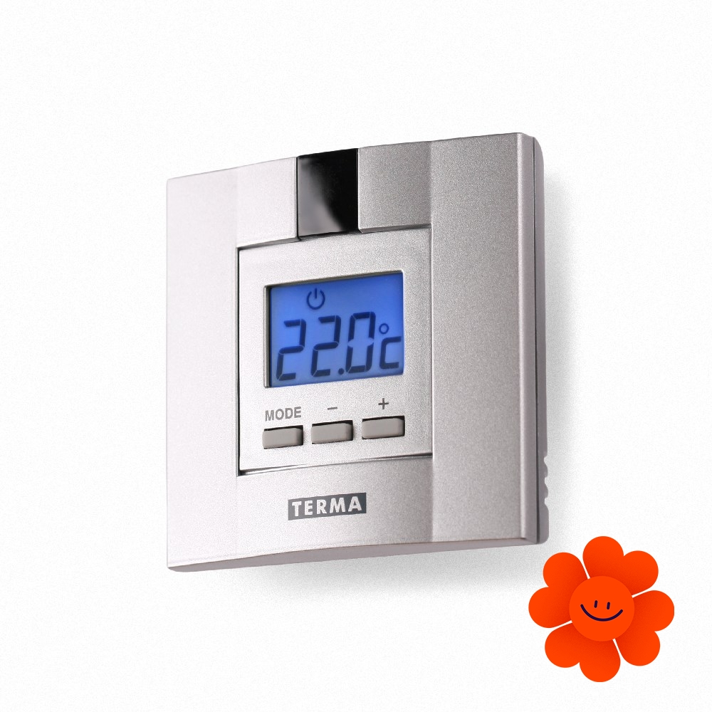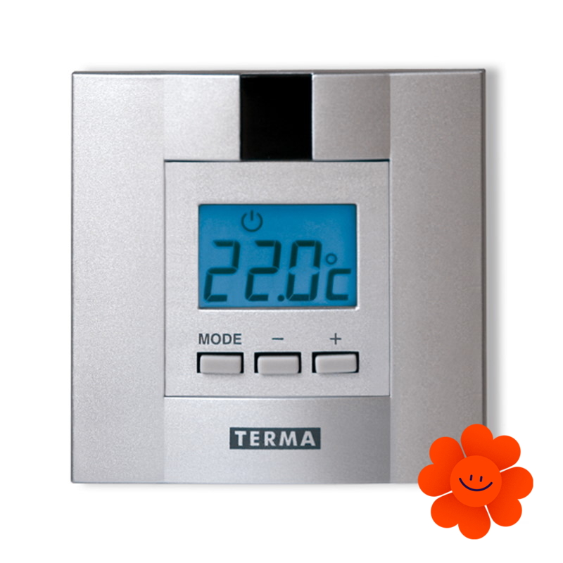 Terma DTIR1 je denný nástenný alebo prenosný programovateľný regulátor, ktorý umožňuje nastavenie teploty v rozmedzí 10 - 30 °C. Regulátor má dva režimy a to manuálny, ktorým možno hocikedy zmeniť nastavenú teplotu, a automatický, kedy regulátor udržiava chod radiátora počas celého týždňa.