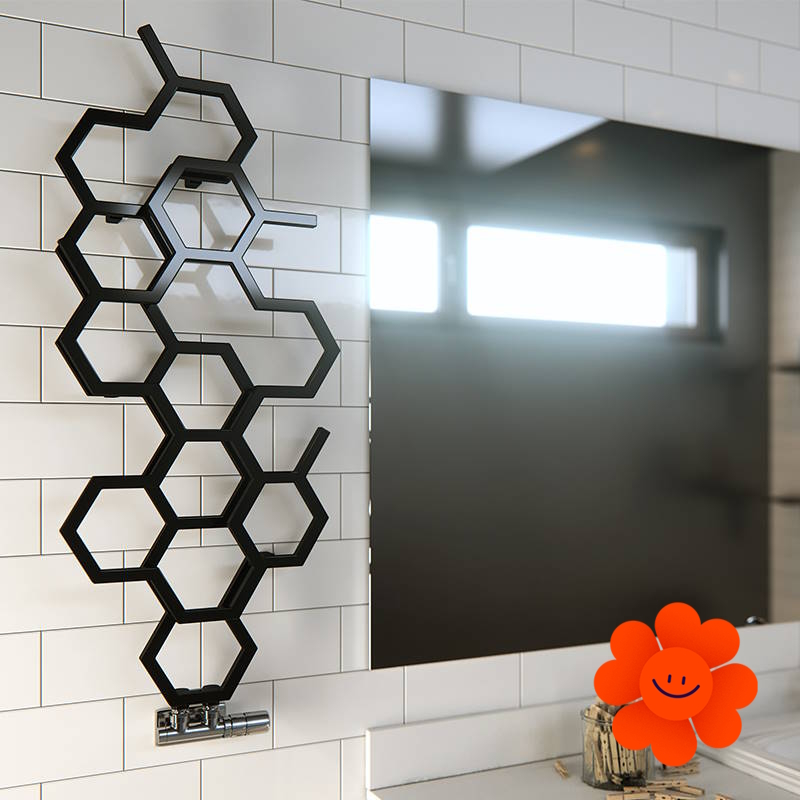Hexagonové moduly ponúkajú značné možnosti z hľadiska zmeny tvaru a veľkosti radiátora, a navyše umožňujú pohodlné zavesenie textílií na sušenie. Vzhľadom na dvojvrstvovú charakteristiku profilov je radiátor nielen zaujímavým obrysom na stene, ale aj vizuálne pôsobí tak, že vchádza do priestoru, a tým sa stáva unikátnym dizajnovým objektom v interiéri.