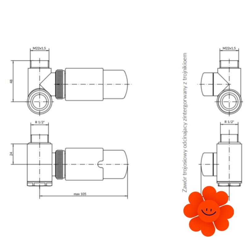 - uhlový termostatický ventil s možnosťou kombinovaného pripojenia