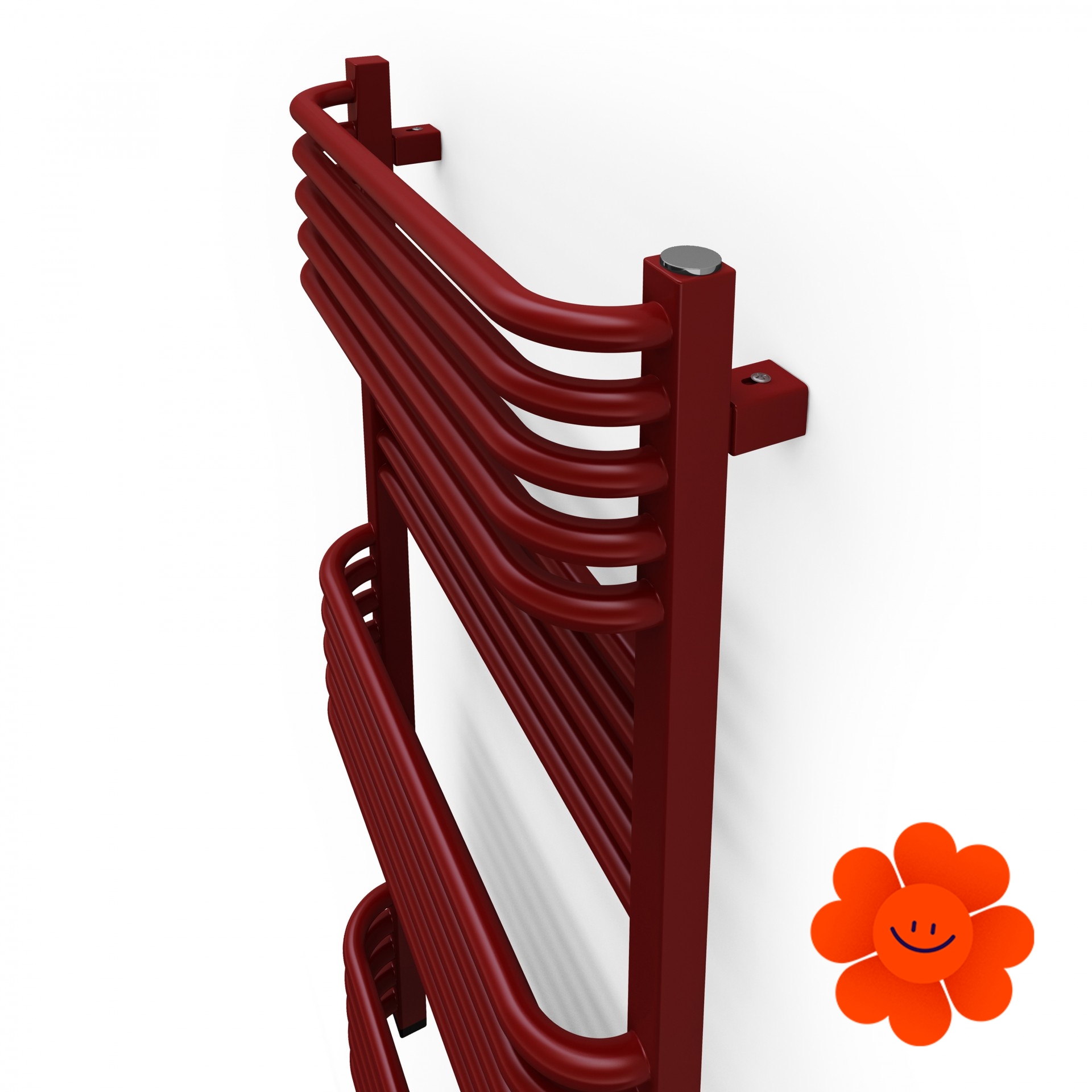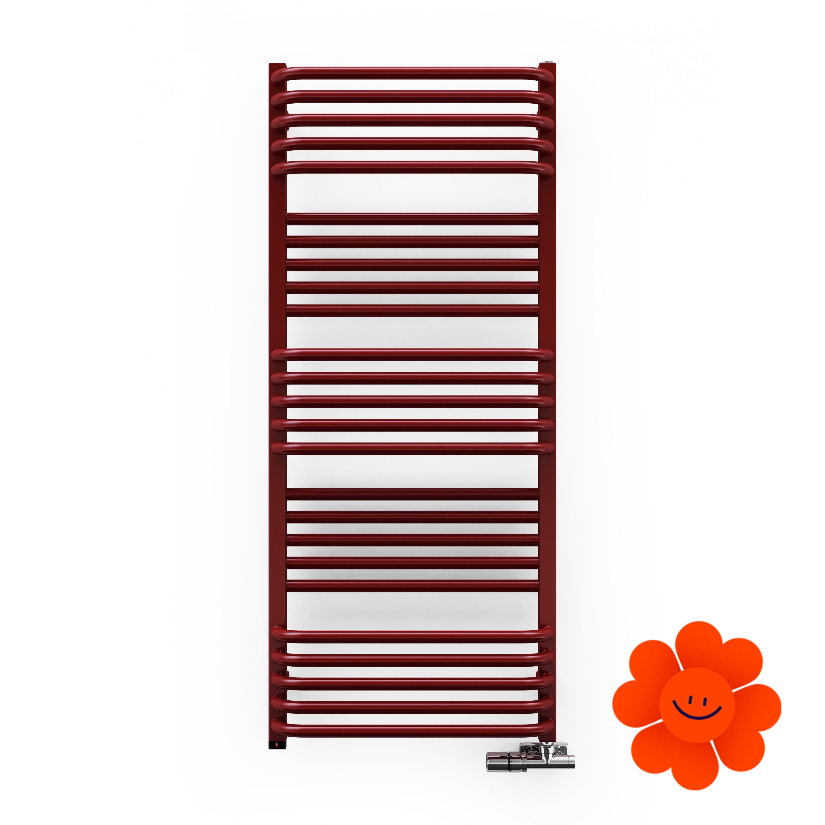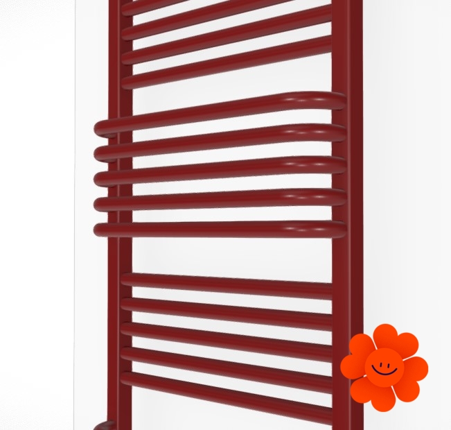 Efektívny a praktický elektrický kúpeľňový radiátor Pola s vlastným vykurovacím telesom ONE skrytým v kolektore. Ohnutá rúrka a medzery medzi časťami uľahčujú zavesenie textílií na sušenie.