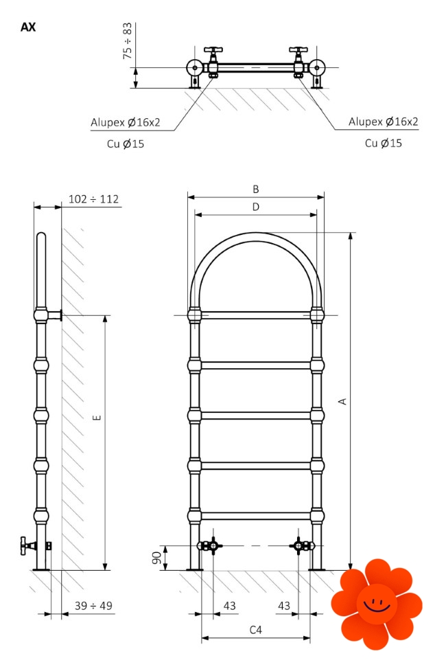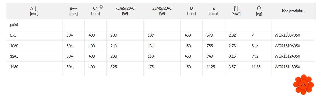 Rozmery a vykurovací výkon (mm)