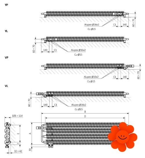 Tu uvádzame horizontálnu verziu radiátora Ribbon "HWS" s jednoduchým usporiadaním špirálovitých rúr pre zavesenie na stenu. Ribbon HWS je k dispozícii vo verzii s vodou. Tepelný výkon: 802-1673 W.