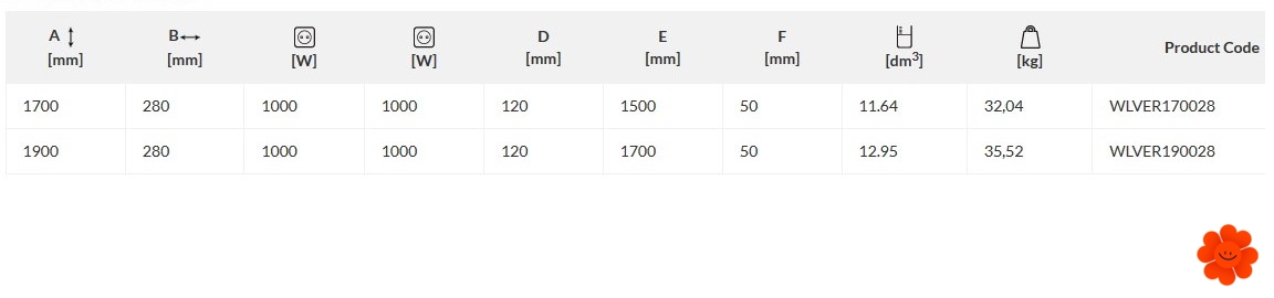 Je k dispozícii v dvoch veľkostiach a mnohých farebných prevedeniach. Tepelný výkon je 1000W.