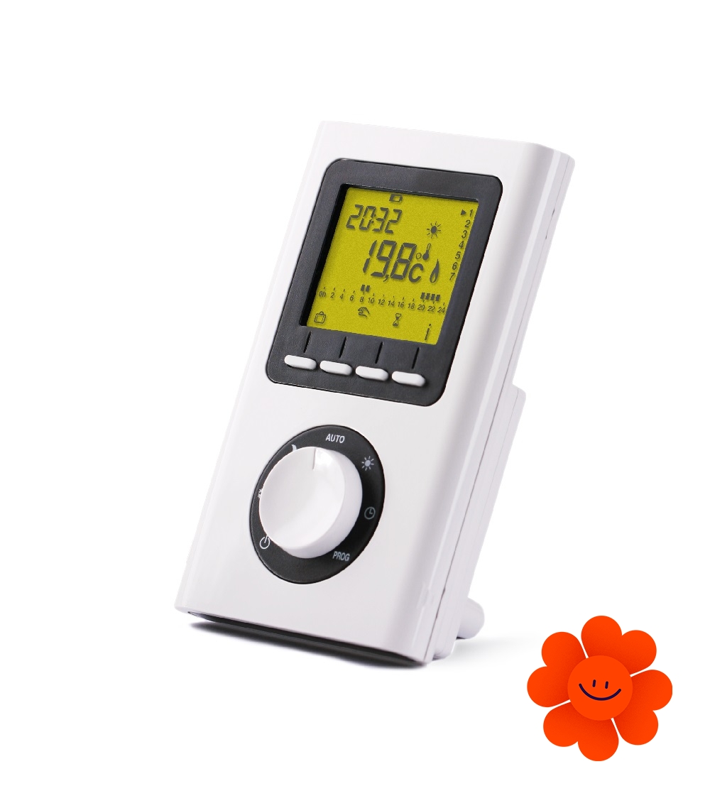Terma TTIR1 je týždenný nástenný alebo prenosný programovateľný regulátor, ktorý umožňuje nastavenie teploty v rozmedzí 10 - 30 °C. Regulátor má dva režimy a to manuálny, ktorým možno hocikedy zmeniť nastavenú teplotu, a automatický, kedy regulátor udržiava chod radiátora počas celého týždňa.