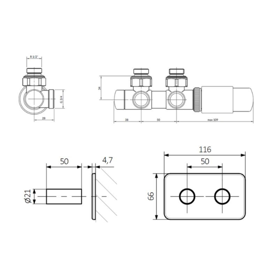 Terma TWINS ALL IN ONE integrovaná rohová termostatická ventilová sada
