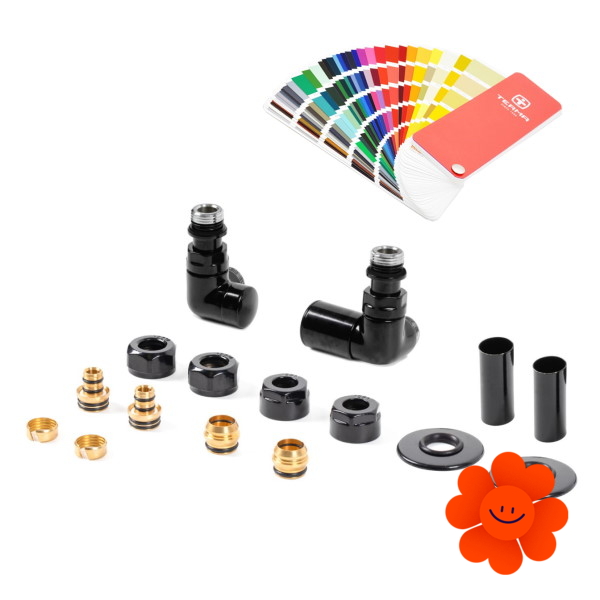 Uhlová manuálna dizajnová sada značky Terma s možnosťou výberu ľubovoľného farebného prevedenia vyrobeného na mieru, umožňuje prispôsobiť sadu k ľubovoľnému radiátoru alebo iným doplnkom.