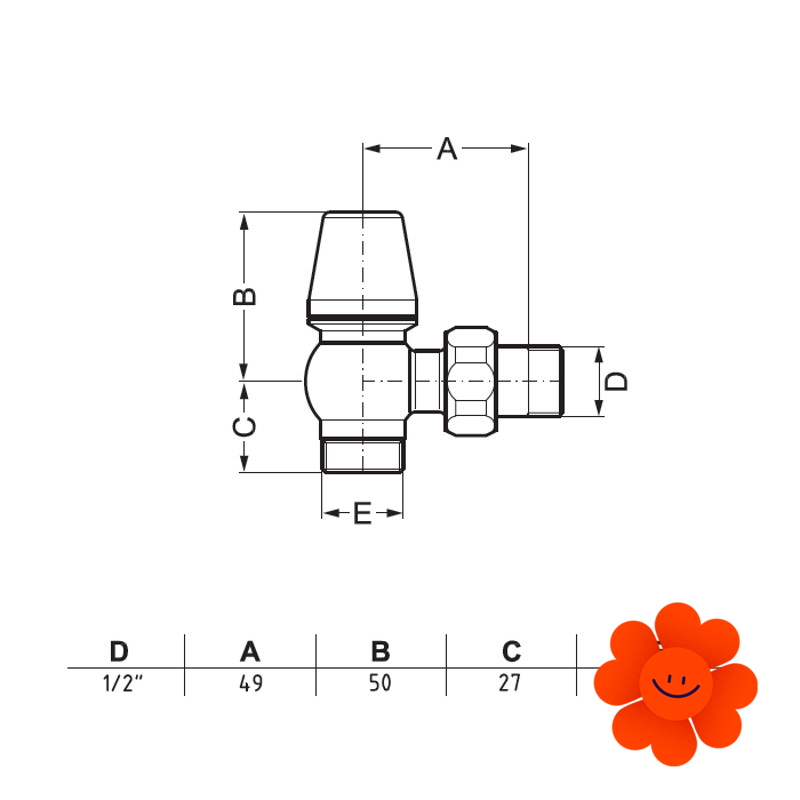 Rohová termostatická dizajnová sada obsahuje: termostatický ventil, uzatvárací ventil, adaptéry AL-PEX ∅ 16x2 a meď ∅ 15.