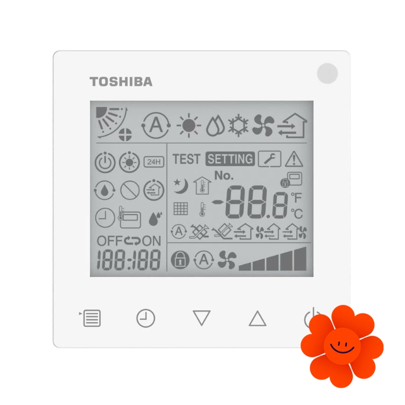 Kompaktný káblový ovládač Toshiba RBC-ASCU32Y-E ponúka pohodlné a intuitívne ovládanie pomocou piatich senzorových tlačidiel.