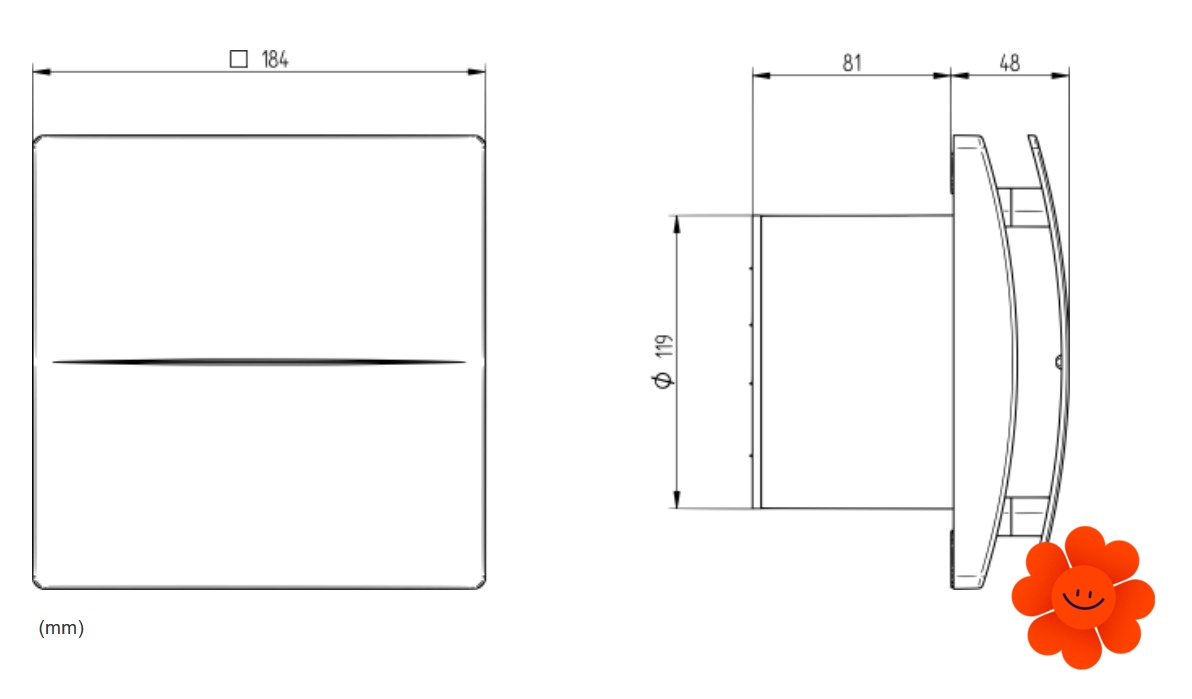 • BF 100, 120, 150 T - s časovým dobehom (nastaviteľným na 1-25min). Po vypnutí ventilátor pokračuje v prevádzke podľa vopred nastaveného času.