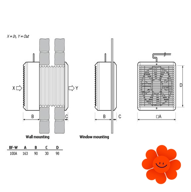 Axiálny ventilátor BF-W 100A je vhodný pre montáž do okna, resp. cez stenu.