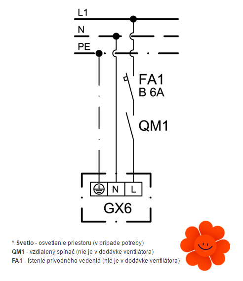 - ovládaný vzdialeným spínačom (nie je súčasťou dodávky ventilátora)
