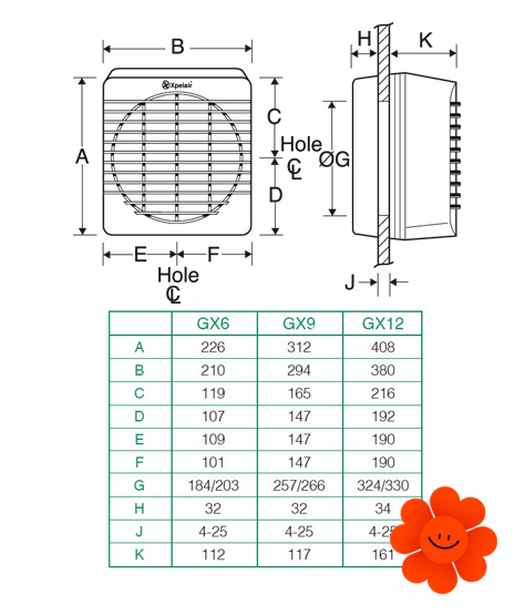 Všetky typy majú lesklý dekoratívny biely povrch. Ventilátor sa skladá z troch častí čo umožňuje jednoduchú montáž na stenu, prípadne je možné inštalovať ventilátor do jednoduchých sklenených výplní (GX6 a GX9 s max. hrúbkou skla 25mm). Všetky typy sú vybavené elektricky ovládanou klapkou. Bezhlučné otváranie a zatváranie klapky je zabezpečené na princípe tepelnej rozťažnosti (bimetal). V prípade požiadavky na permanentné alebo nenútené vetranie je možné klapku vyblokovať odpojením ovládania.