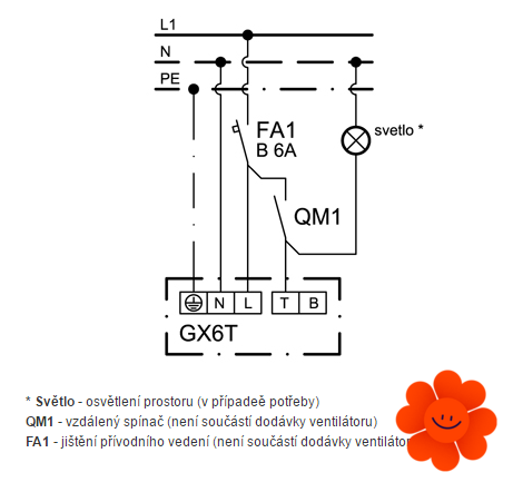 Štandarné modely a modely s časovým dobehom je možné ovládať vzdialeným vypínačom (nie je súčasťou dodávky).