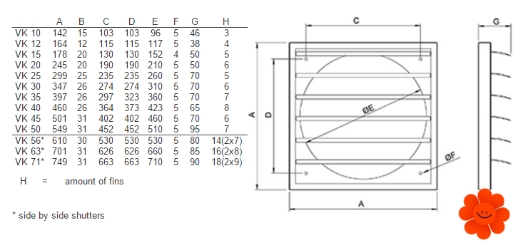 Samočinná pretlaková žalúzia pre vertikálnu montáž na vonkajšiu stenu. Má profilované listy a pracuje veľmi dobre aj pri nízkych rýchlostiach vzduchu. Maximálna rýchlosť vzduchu je 12 m/s. Pretlaková žalúzia je zhotovená z nárazuvzdorného nylonového materiálu odolného proti poveternostným vplyvom a proti ultrafialovému žiareniu. Pretlakové žalúzie sa veľmi ľahko montujú, skrutky a hmoždinky sú priložené.